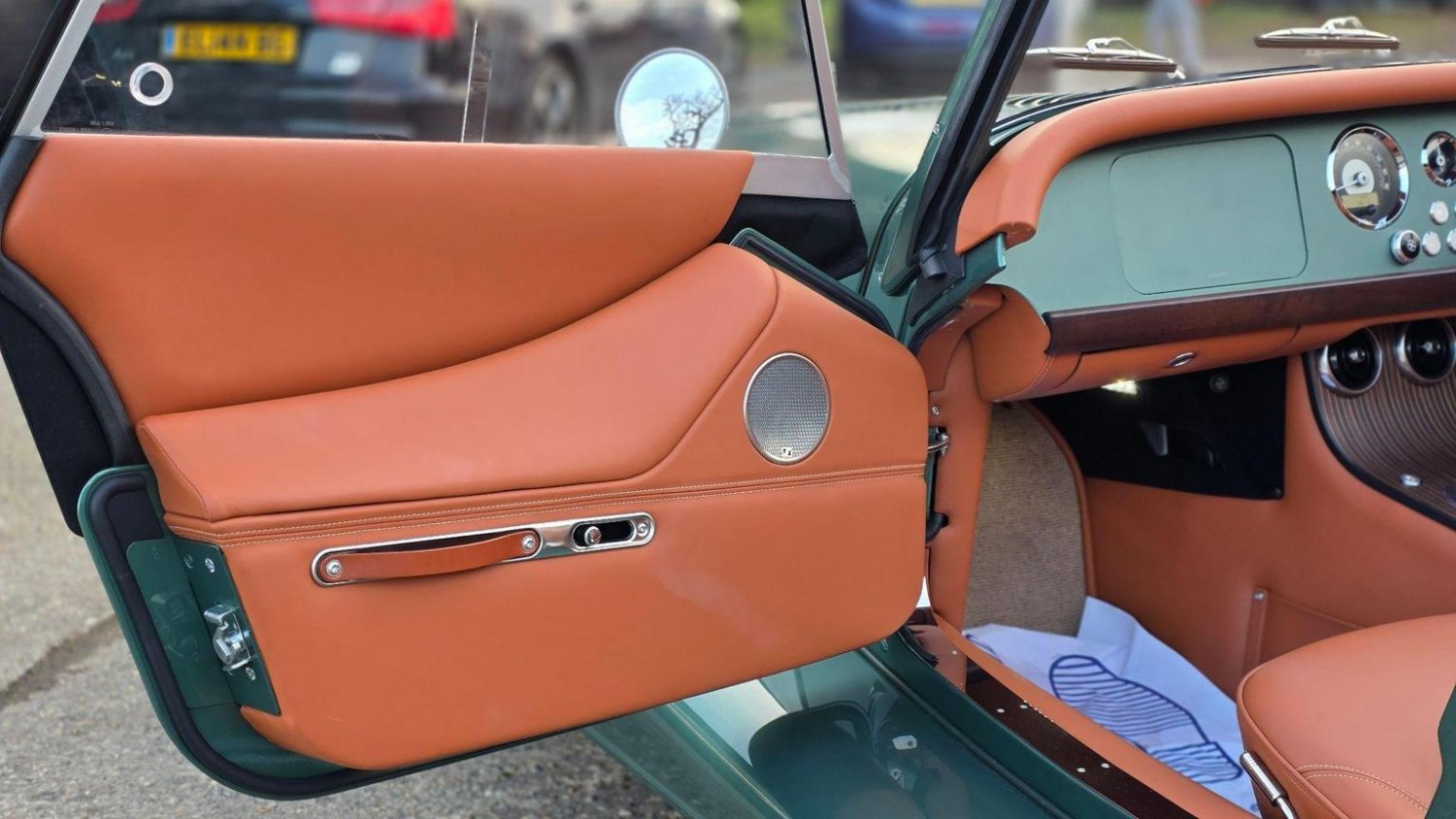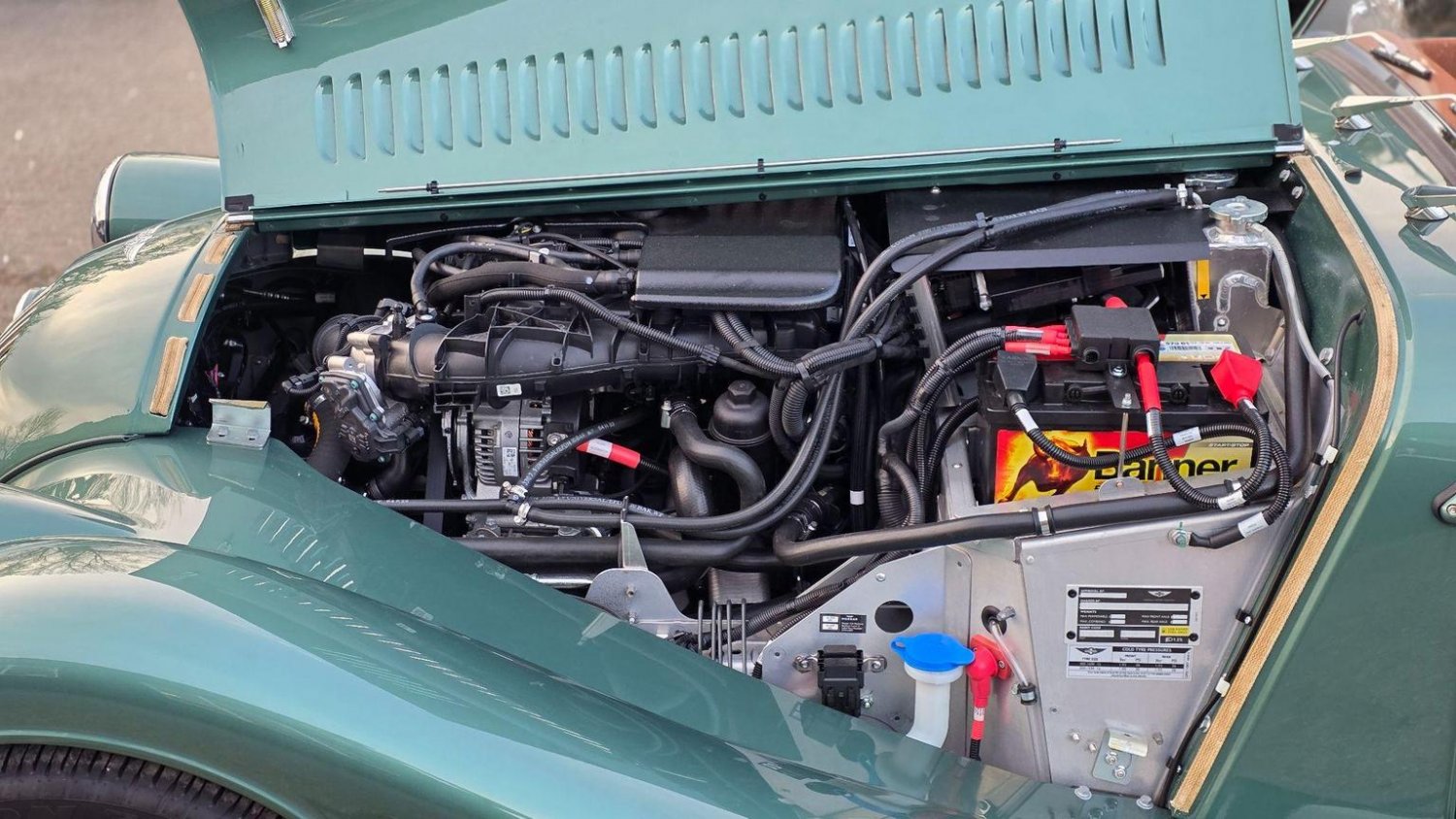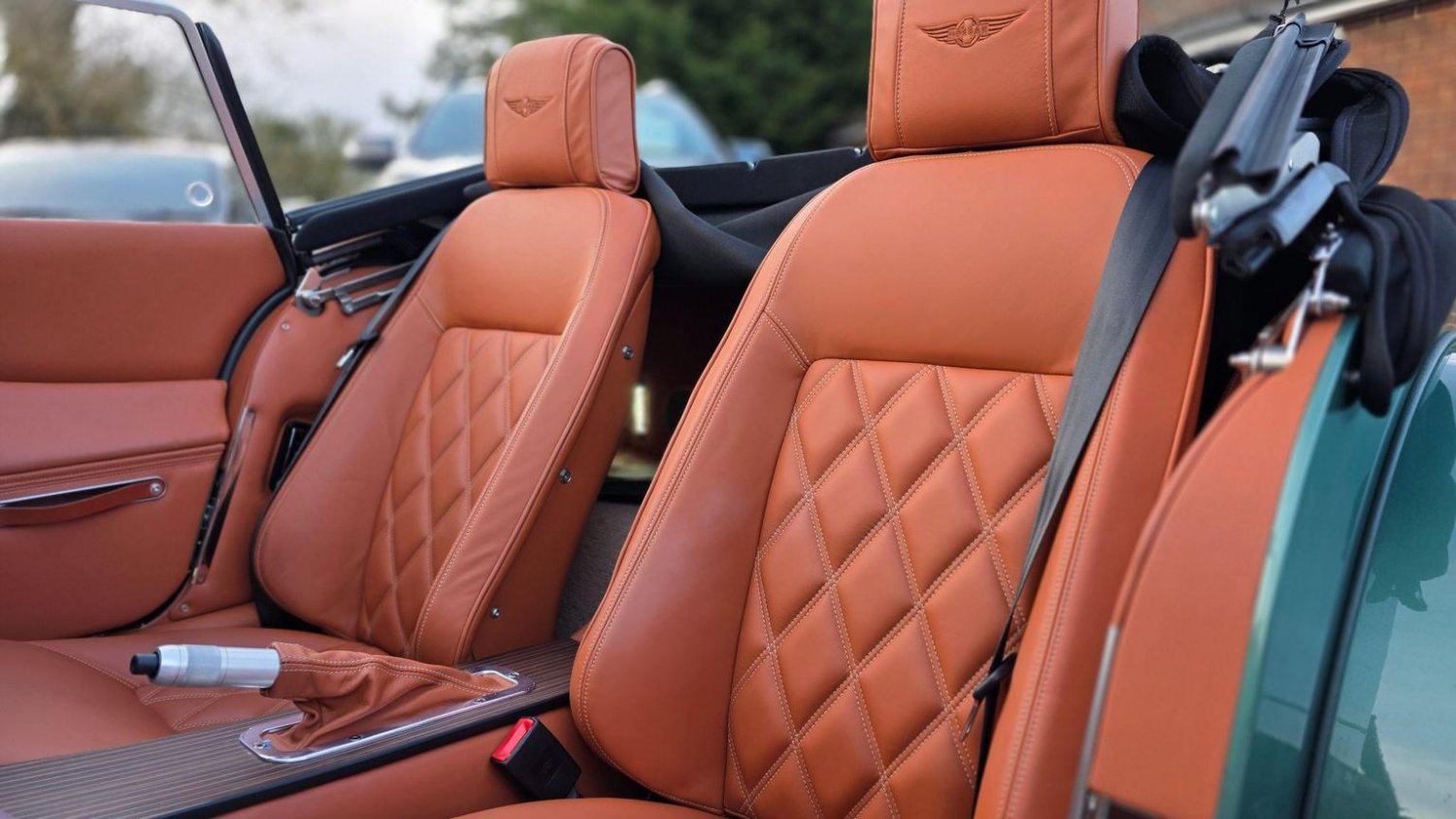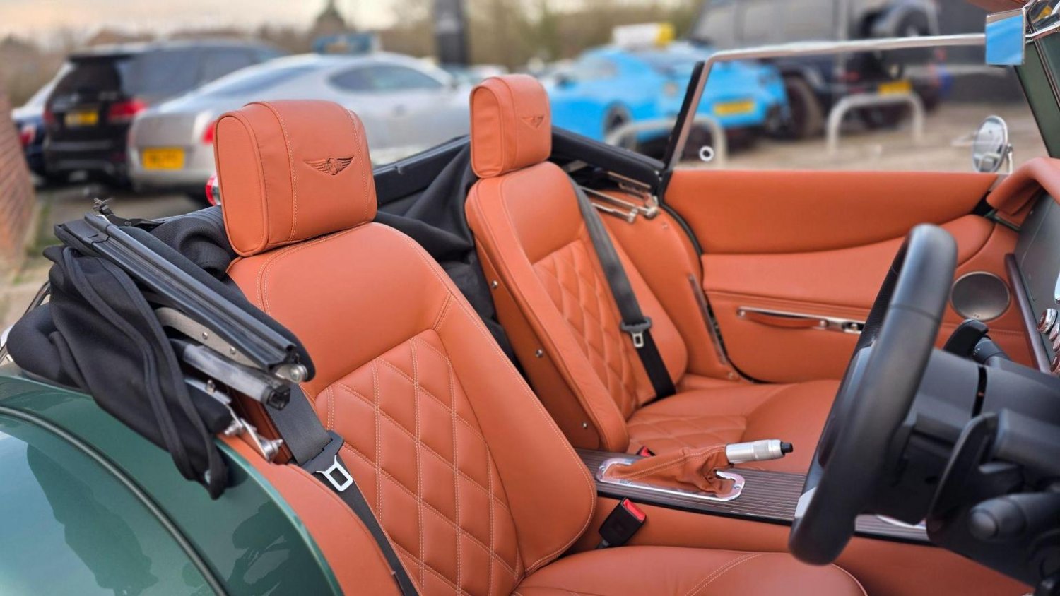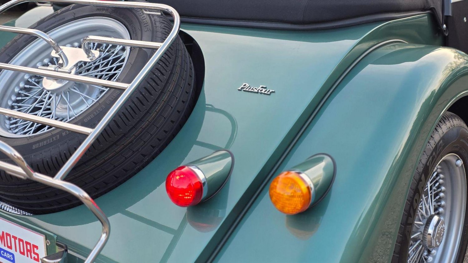 Heated Seats, Stitching - Contrast Colour - Biscuit, Sun Visors, Steering Wheel Centre - Black, Soft Grain Leather - Rich Tan, Dashboard Textile - Matte Finish - Veneer Brown Velvet, Speaker System with Bluetooth Input and Volume Control, Puddle Lights, 15in Wire Wheels - Painted Silver - Four-Wheel Vehicle, 15in Wire Wheels - Painted Silver - Five-Wheel Vehicle, Black Grille Mesh, Bonnet Badges - Union Jack Coloured, Easy-up Hood - Green Mohair, Wing Beading - Green, Air Conditioning, Box Weave Carpet - Biscuit, Centre Column Top - Leather Wrapped - Matched to Main Leather Colour, Extended Leather Interior, Head Rest Embroidery - Morgan Wings Logo